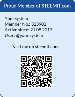 You may like this nice Card. Use it in any way you want: This version is a completly free gift for you. Save it at your Computer or Smartphone. Some clever Steemians print it for takeaway. The QR-Code leads directly to your blog.