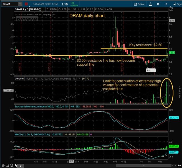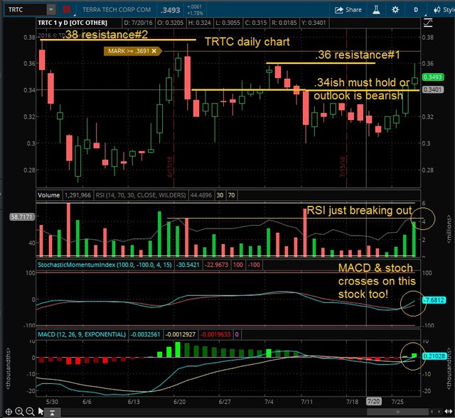 The TRTC mention did great though, running over 15% today at the high of the day, and holding its gains with a close of over 10%. The daily chart is even nicer now, and has all the makings of a multi-day runner. I am holding shares from .35 and I added a lot of shares today at .38 and .40.