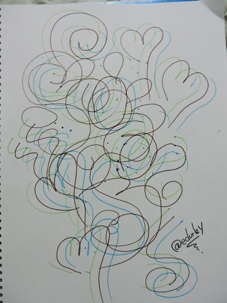 For the elaboration of my drawing, select three markers of different colors and on my drawing blog, position the three markers with the purpose of creating different uniform strokes in the same direction, turn off all existing light and start my creative process, in which I wanted to drawing hearts in the midst of a happy environment full of flowers and fantasy, all these elements together expresses the meaning of the title of the work "The party of love."