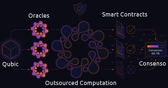 Qubic allows for exactly those outsourced calculations and allows for safe, unlicensed participation for consumers and producers. The protocol allows anyone to create or request the execution of a computational task on one or more external devices, which, in turn, transmit the results back to the requestor. As with Oracle machines, this processing takes place in a decentralized and secure manner, with the Qubic protocol ensuring that the results can be entrusted to a high degree of certainty.