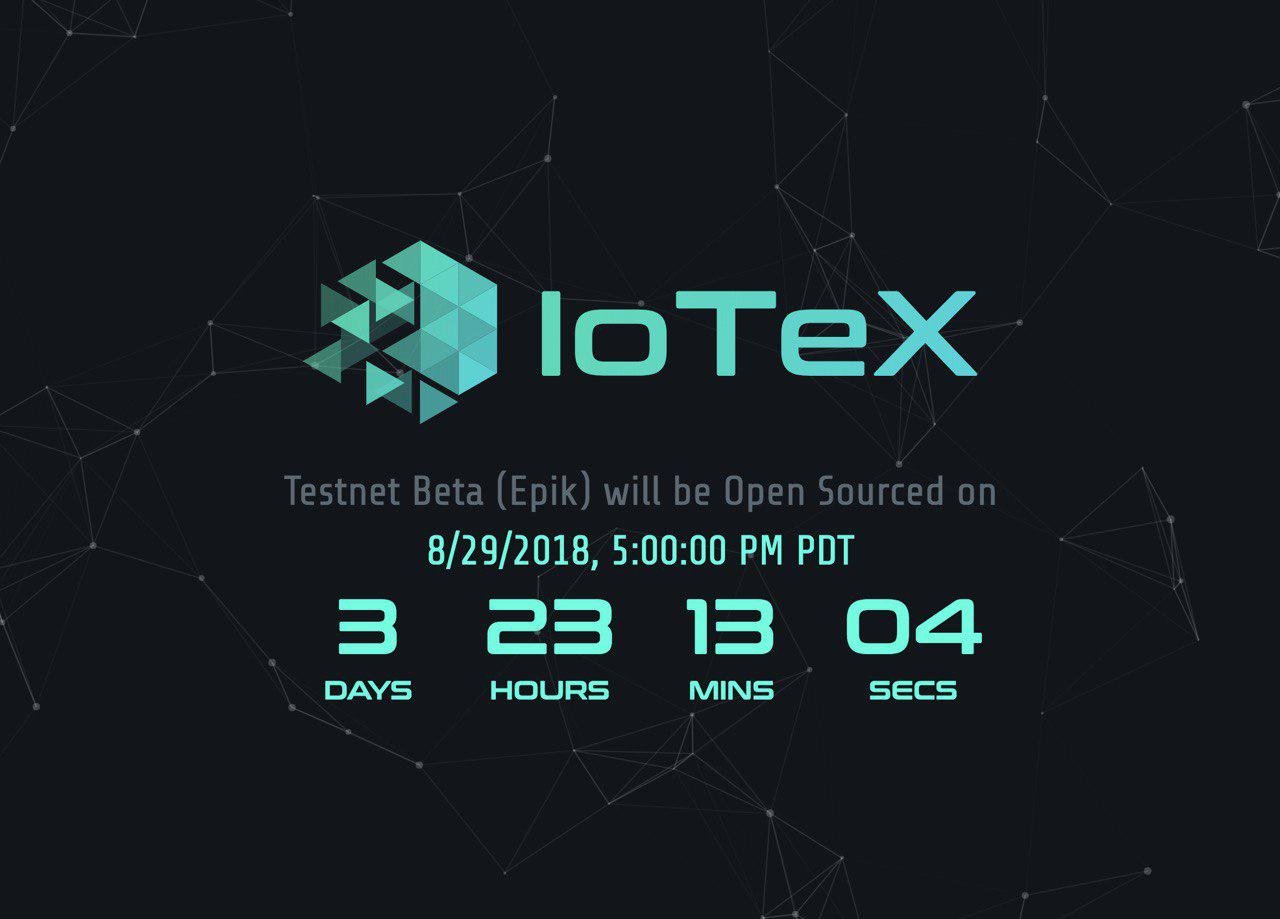 ⏰IoTeX Testnet Beta, codename Epik, will be released in 4 days on Aug 29! 🎉🎉Let’s count down together to the exciting moment! https://iotex.io/