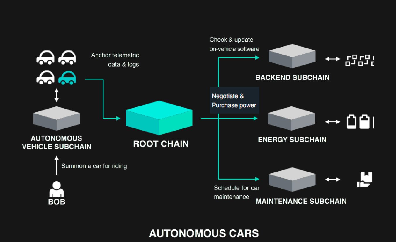 IoTeX as a platform for others to build DApps for IoT. Each IoT DApp runs within one subchain and can communicate with other subchains via the rootchain. Typical IoT DApps lies in the sectors of sharing economy. For example, a device loans out its computation/ storage/ connectivity capability in exchange for tokens or a device (like a RFID on the bike) can provide certain services in exchange for tokens.