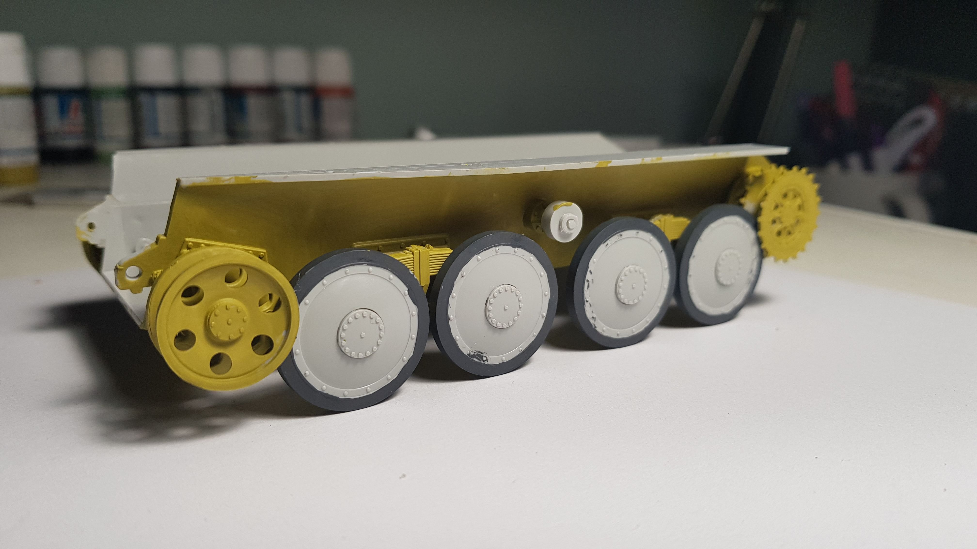 Prima di mettere le ruote bisogna colorare il fondo della base di un senape chiamato Panzer Dunkelgelb