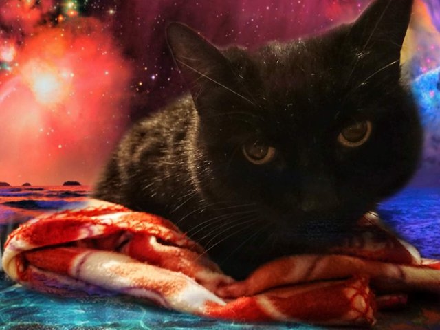 Ciao 😀, uso PicsArt. In questo caso l'ho usata inserendo degli adesivi sopra la foto e cancellando le parti che coprivano il soggetto (la micia). Comunque ha molte funzioni. A me piace molto 💕