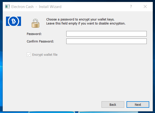 Step 9: Select "Next" and you will be prompted to create a new password for the wallet file you created. Make sure you make something that is secure.
