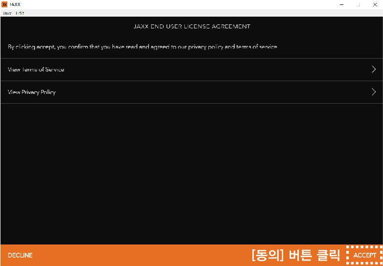 JAXX 서비스를 시작하라는 뜻이니 동의버튼을 누릅니다.