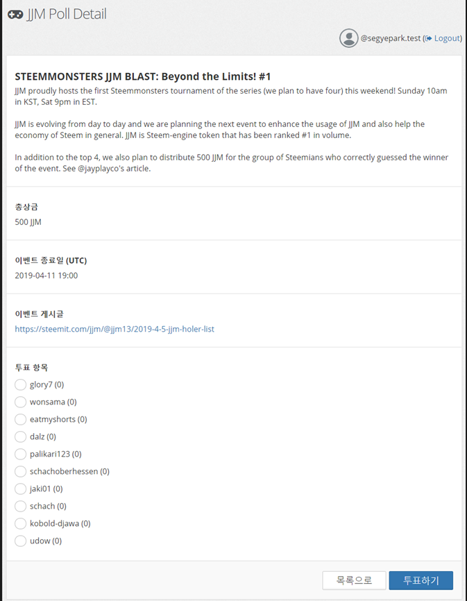 곧 JJM 에서 개최하는 스팀몬스터에서 토너먼트가 열립니다.