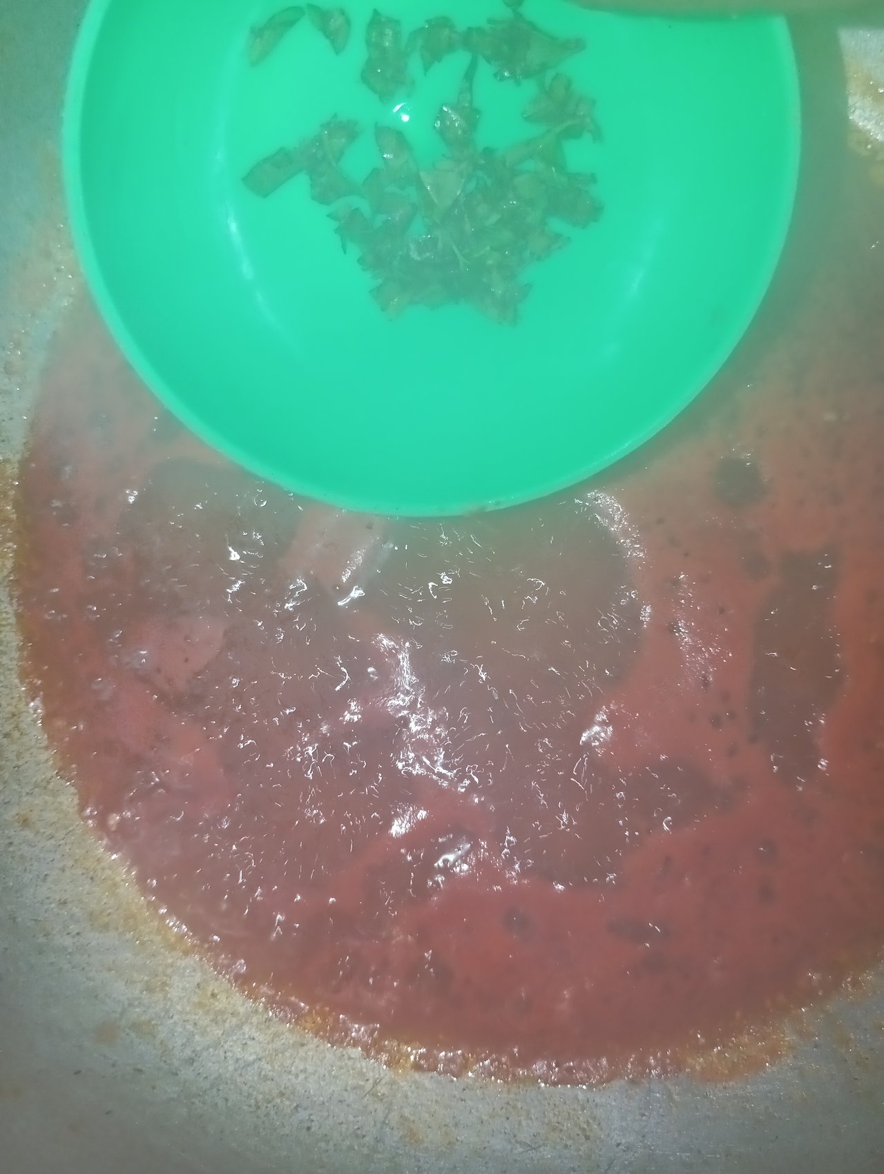 In another pot, I warmed cooking oil and appended cloves and cinnamon for a several seconds. Then I streamed the tomato puree into it and subjoined salt, red chili powder, black pepper, apple cider vinegar, and jaggery.
