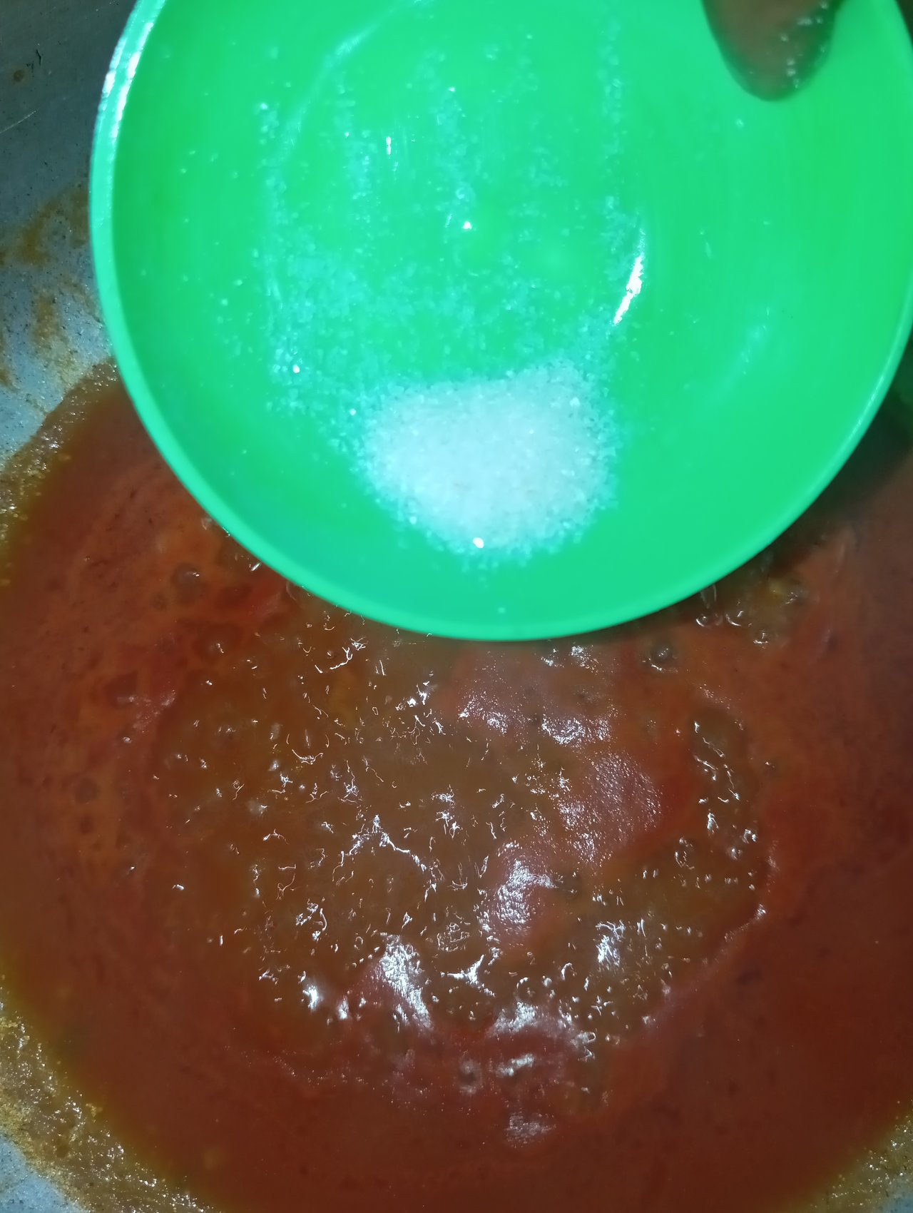 Then I streamed the sophisticated juice back into the pot and appended white vinegar, salt, red chili, and sugar.