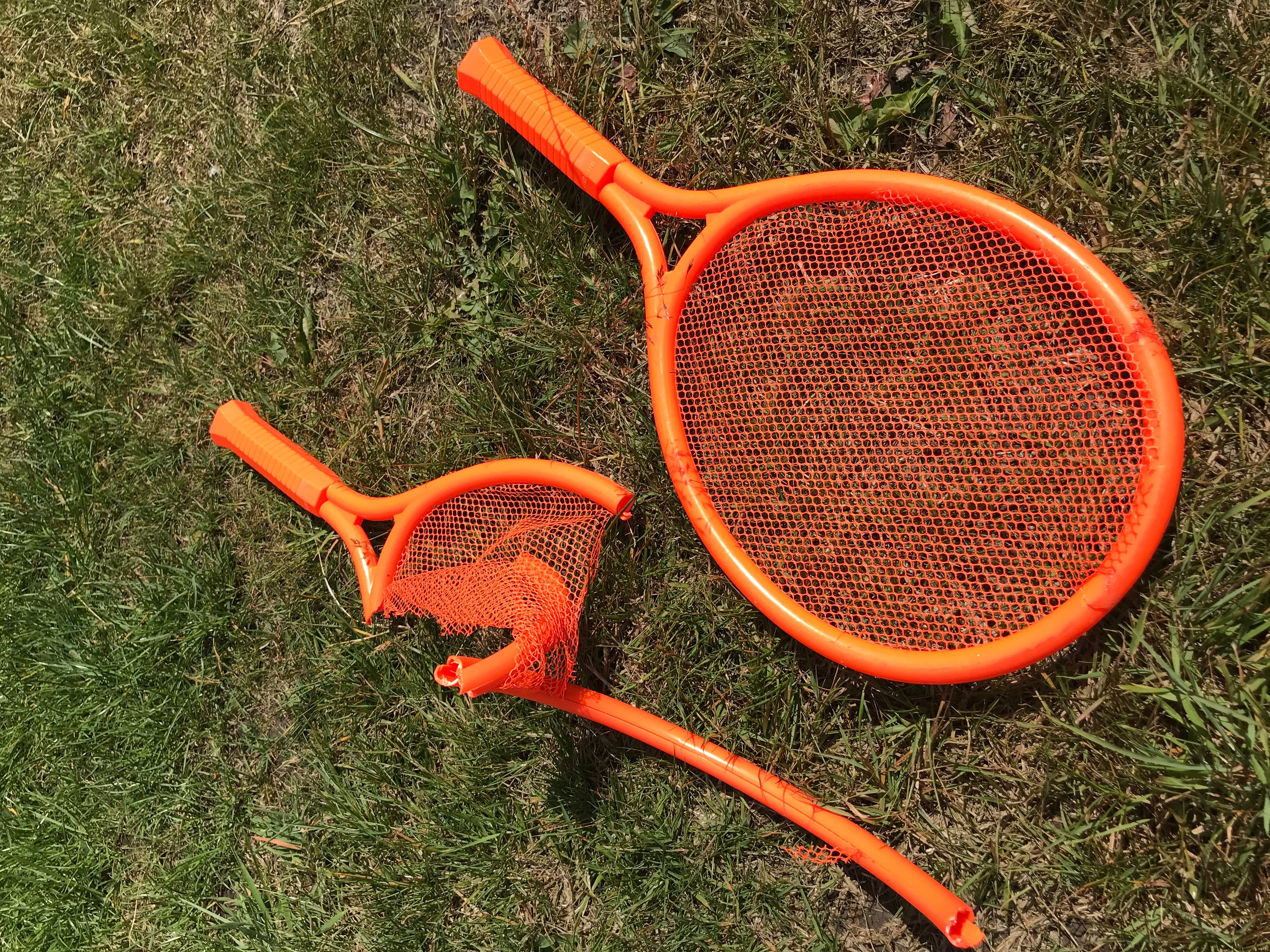 Trampoline tennis did not treat this set of tennis racquet set so Kindly, for some bizarre reason my youngest boy is insisting on keeping them like some sort of trophy!