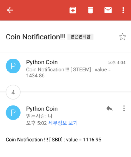 STEEM, SBD 가격(KRW) E-mail Notification - Python Script