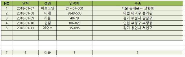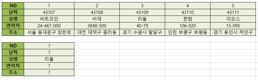 위와 같은 형태의 데이터에서 한가지 데이터(이름) 밖에 알지 못할 때