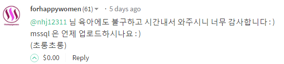 이렇게 강한 푸시를 주시니 ㅋㅋㅋ 7편을 작성해봅니다. 이번편부터는 비개발자 타이틀을 빼고 작성합니다. 프로시저부터는 비개발자분에겐 적합하지 않다고 생각이 듭니다. 그래도 @forhappywomen님처럼 적극적으로 배우시는 분이라면 충분히 따라올만한 내용일 것입니다. 저는 신입때부터 약 3년간 mssql을 써봤고 당시 주요 업무들의 처리가 거의 모두 프로시저로 되어있었기에 그때 프로시저를 많이 써봤습니다.
