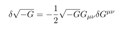 이를 이용해서 metric G 의 determinant 인 G 의 variation 을 구할 수 있다.
