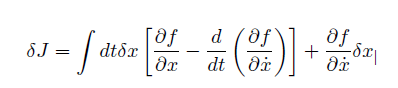 를 얻고 Least action principle 이라는 것은 저 J 를 extermize 하는 것이기에 \delta J=0 으로 부터