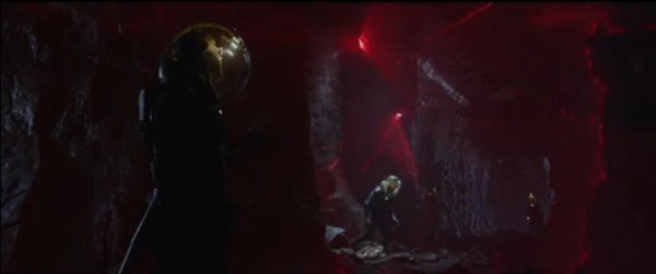 영화 프로메테우스의 한장면의 일부입니다. 동굴 탐사를 하기 위해서 드론같은 비행물체를 2개 띄우는 장면으로 붉은빛을 주기적으로 동굴벽에 비추는데 영화상에서 센서의 하나겠지요. 비행물체는 비행하면서 붉은 빛을 비추면서 동굴의 정보를 추출하게 됩니다. 그리고 우주선 본체에서 추출된 정보를 통해서 동굴 통로를 3D 랜더링을 하게 됩니다.