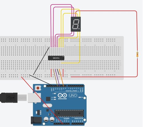 - 준비물 : 75HC595 칩 1개, 7 Segment LED 1개, 저항 330옴 1개, 아두이노우노, 뻥판