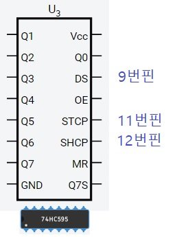 - Q7S 핀 : 직렬 연결할때 사용합니다.이 칩 역시 8개값을 출력하기 때문에 더 많은 값을 출력하기 위해서 칩을 직렬 연결용으로 사용