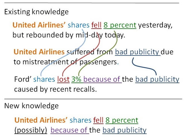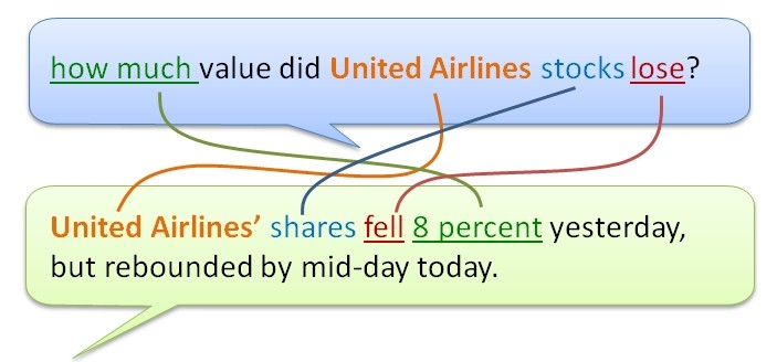 지식 기반 머신러닝은 위의 그림처럼 온톨로지 연결을 사용하여 학습한 내용에서 질문에 답변할 수 있습니다. 오른쪽의 그림은 네트워크에 제시된 질문이 이러한 온톨리지 연결을 사용하여 가장 적절한 답변을 찾는 가상의 사례입니다. 부분만 연결한 경우, 네트워크는 대상, 사건 및 개체 등의... 이 순서에 중점을 두어 정확도 점수를 가지고 답변을 생성합니다. 응용 프로그램의 유형에 따라 최고 점수를 획득한 문장이 임계값보다 낮으면 임계값을 설정하여 "무응답"을 설정할 수 도 있습니다. 이러한 기능을 통해 챗봇(chatbot)은 자신의 성능에 대해 스스로 자각하게 되고 질문 답변에 대해 얼마나 잘 수행하고 있는 지에 대해 레포팅할 수 있게 됩니다. 또한, 이것은 chatbots이 특정 질문에 대답하는 법을 배우기 위해 피드백을 요청하는 '사회 학습'으로까지 확장될 수 있습니다.