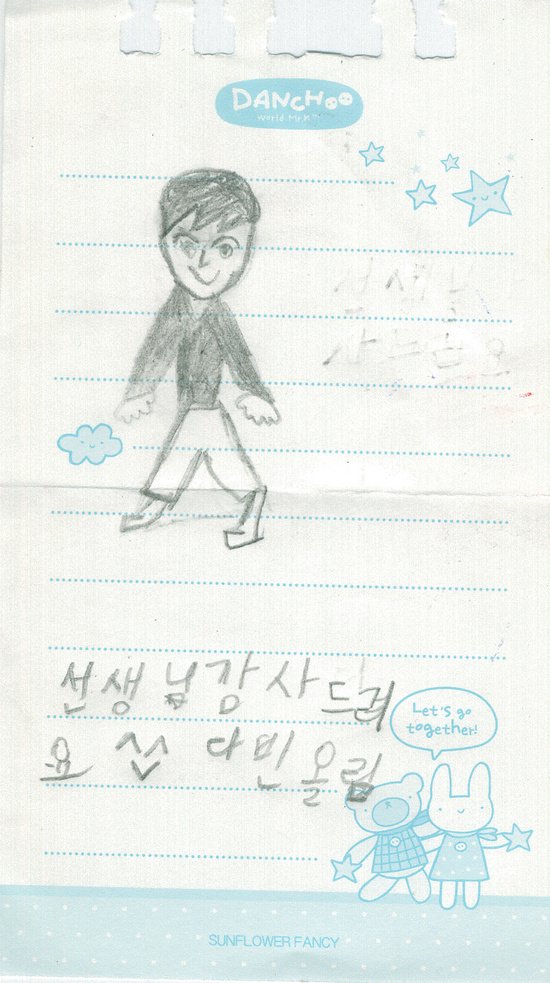 아이들이 그린 선생님의 모습이 웃고 있는 표정이네요. 사실 아이들을 가르친다는건 쉽지 않은 일이죠. 특히나 아동들이라니 !!