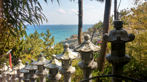 조금 전에 사진들이 바다를 등지고 건물쪽을 찍은 사진이라면 이번 사진은 건물을 등지고 바다쪽을 찍은 사진입니다. 생각보다 절의 크기가 컸으며 빨간색 우체통이 눈에 들어왔습니다. 마치 울산에 있는 소망우체통 같은 느낌이 들어서 그 옆에가서 그리운 사람에게 손편지 한장 써어서 보내고 싶다는 생각에 빠져 들게 되었습니다.