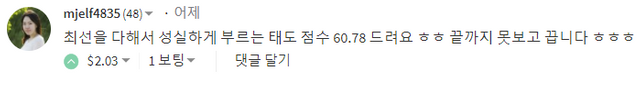 다음에는 70점 대 이상의 노래를 하겠습니다. ㅋㅋ