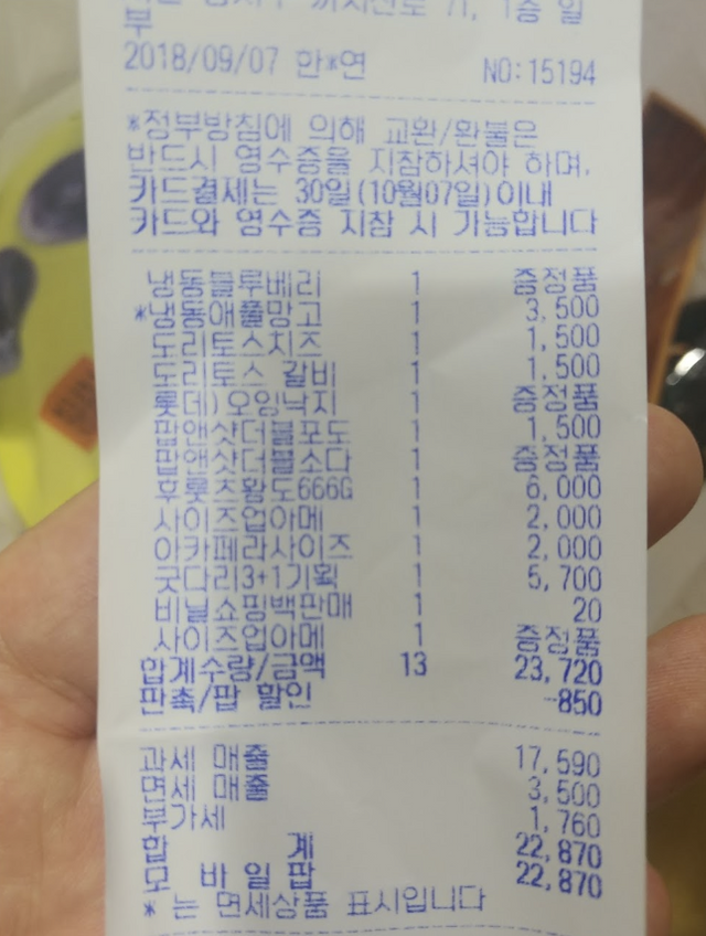 1+1이 큰 변수 였지요 ㅎㅎ 증정품이라고 되어 있는 것들이 1+1 거기에 팝카드 할인..