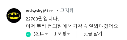 2등은 @noisysky 님이십니다 편의점 가격을 보고 오신걸까요 ^^