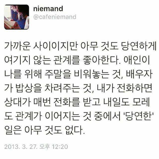 항상 당연한 것들을 소중하게 생각할 수 있는 자세가 중요하지 않을까 하는군요.