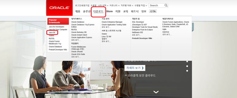 오라클 홈페이지(http://www.oracle.com/kr/)로 들어가시면