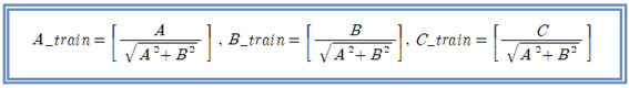 1/√2 = 0.707 로 두면 리스트 데이터는 다음 같이 A_train = [ 0.707 ], B_train = [ 0.707 ], C_train = [ 0.707] 으로 설정된다.