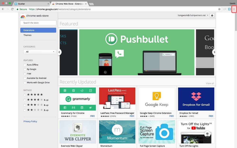 6)정상적으로 설치되었다면 Chrome의 오른쪽 상단에 Scatter 로고 확인 가능