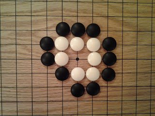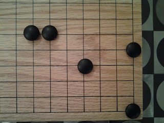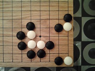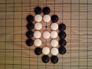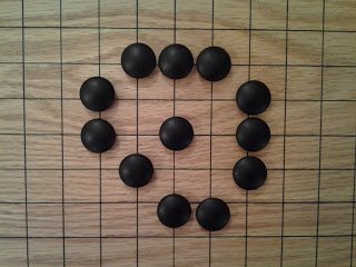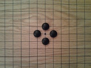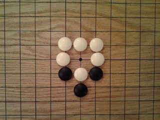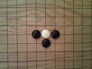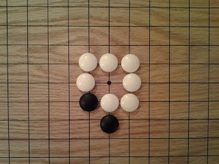The more connected stones are, the harder it is for the opponent to capture them. That is why players try to form an "eye", which looks like this: