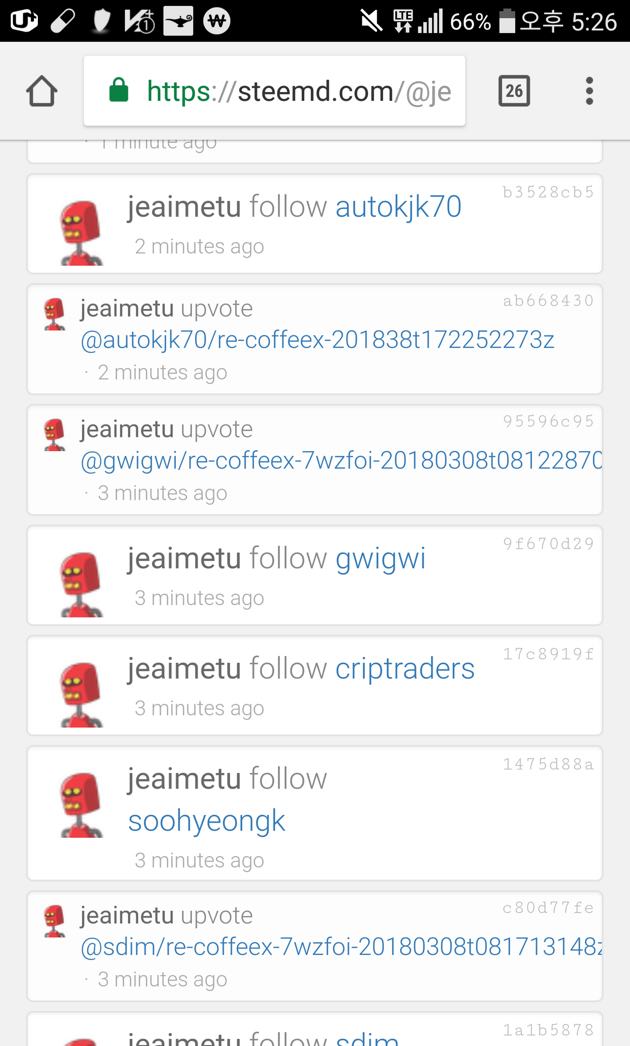 You are viewing a single comment's thread from:RE: 이벤트 합니다 - [보팅 모으기 운동]View the full contextView the direct parentjeaimetu (52)in #kr • 8 years ago 퇴근직전..보팅봇 처럼 여러개 누르고 갑니다. ㅋ 다 캡쳐가 안될정도로...퇴근하고 돌아오겠습니다.