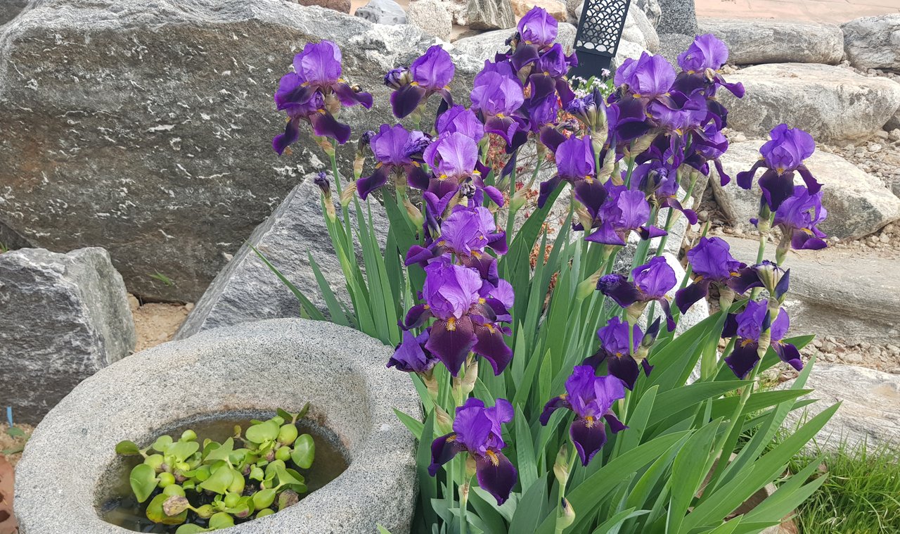 그 옆으로 보라색 매발톱이 피어 있는 두번째 화단입니다