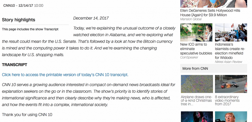 들어가보면 알겠지만 각각의 아카이브(archive,article)은 결국 뉴스의 영어 대본이다.