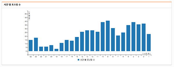 - 예를 들어, 24시간 기준으로 필터링 하기 때문에 태그 사용은 2개가 될 수 있습니다. 따라서 3개 이상 사용한 사용자부터 보이게 하였습니다. 주간의 경우 9개 이상 사용한 사용자부터 보입니다.