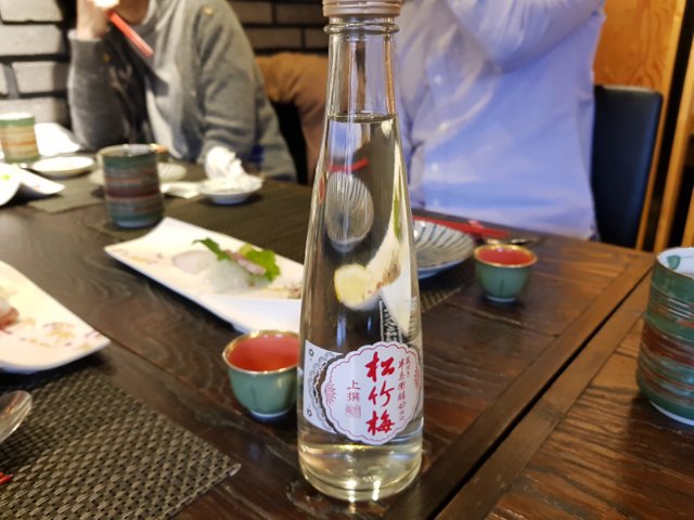 된장국입니다. 그냥 미소된장은 아니고 생선살이 잔뜩들어갔는데 무슨생선인지는 물어보지 못하였습니다. 여튼 튼실한 된장국까지 먹고나면 본격적으로 스시코스가 시작됩니다. 입이 약간 떫은듯 해서 친구들이 술한잔씩 하기위해 제일 저렴한 술을 하나 시켰습니다. 친구들 모두 술을 많이 먹지않는데다 술값이 너무 비싸서 작은 이놈으로 골랏는데 그냥 무난했습니다. 무슨술인지는 아직 모릅니다. ㅋ