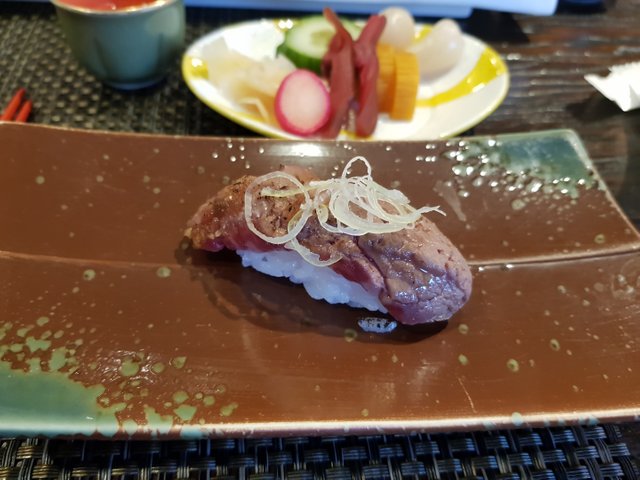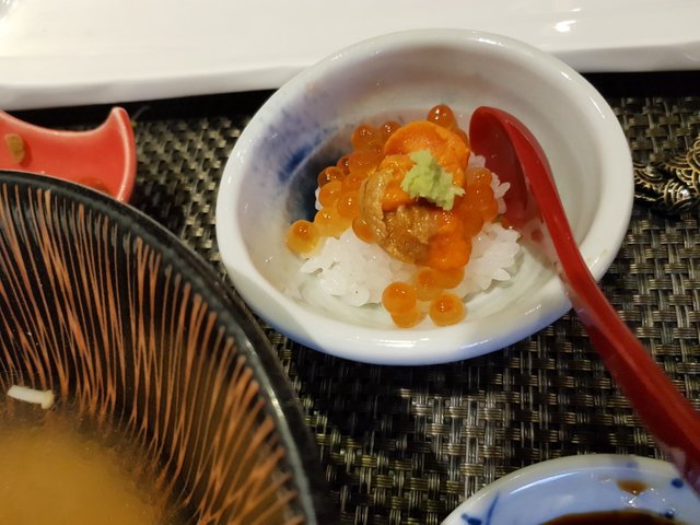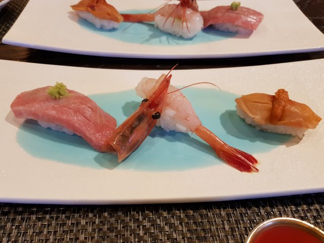 스시 위에 올라가 있는 소스들도 유자 랍스터 성게알 등 직접 만들어서 어울리는 소스를 얹는다고 합니다. 정말 맛있고 고급진 스시 였습니다. 여기 9점 외에 한점은 한우스시 또는 연어알 스시를 선택할 수 있다고 합니다. 저는 한우 스시를 선택했고 친구들은 연어알 스시를 선택했는데 연어알 스시가 저는 김말이 그건지 알았는데 알밥수준으로 나와서 조금 부러웠습니다. ㅋㅋ