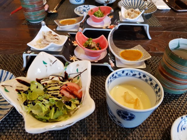 에피타이저로 셀러드와 함께 새우 전복 등이 들어간 계란찜 도미 등 2가지 생선의 껍질요리 고노와다가 나왔습니다. 개인적으로 비린것을 정말 못먹는데 신선한 고노와다는 잘 먹습니다. 고노와다 향이 역겨운 비린내가 아니라 일반적으로 이야기하는 바다의 향기 같습니다. 물론 광안리 바닷가에서 평생을 살아온 저에게 바다의 향기는 비린내에 더욱 가깝습니다. 참고로 고노와다는 해삼 내장입니다.