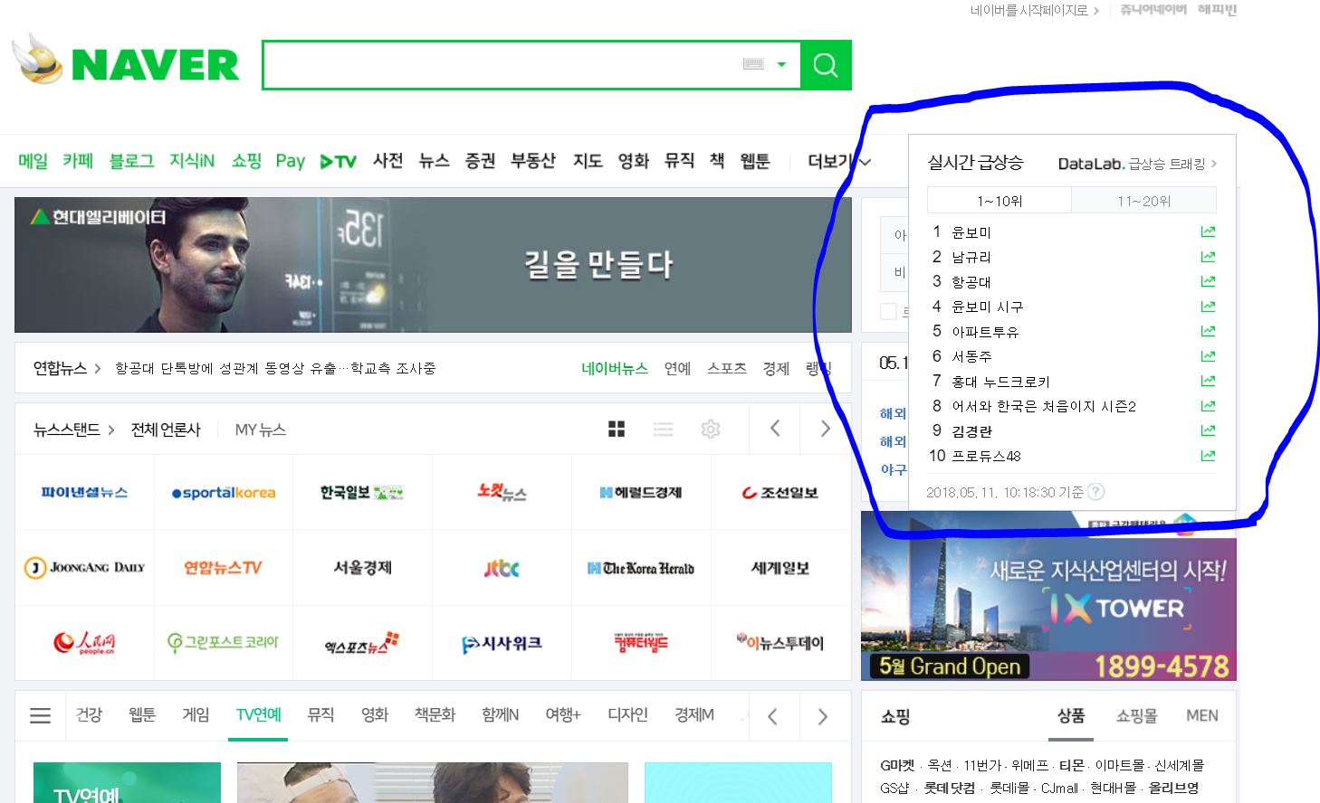 네이버로 설명하자면 위에 보여지는 화면을 전체적으로 UI라고 부릅니다. 모든 부분들이 사용자들의 행동 패턴에 맞게 시스템에 명령을 할 수 있도록 되어있지요.