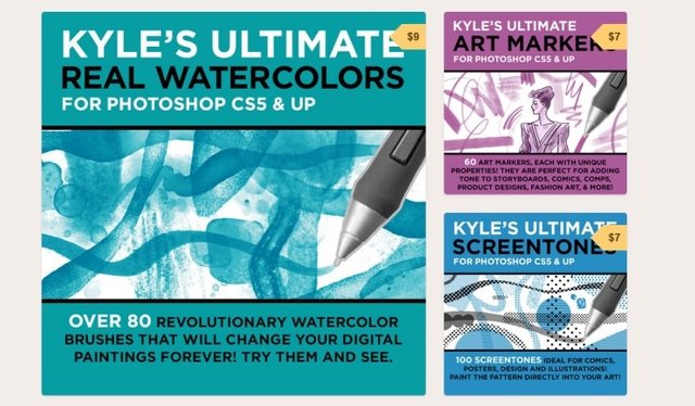 Kyle's ULTIMATE Real Watercolors for Photoshop, 9달러(한화로 약 만원)