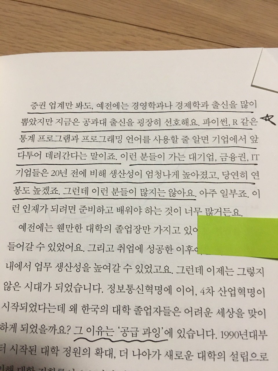 증권 업계만 봐도, 예전에는 경영학과나 경제학과 출신을 많이 뽑았지만 지금은 공과대 출신을 굉장히 선호해요. 파이썬, R같은 통계 프로그램과 프로그래밍 언어를 사용할 줄 알면 기업에서 앞다투어 데려간다는 말이죠. 이런 분들이 가는 대기업, 금융권, IT기업들은 20년 전에 비해 생산성이 엄청나게 높아졌고, 당연히 연봉도 높겠죠. 그런데 이런 분들이 많지는 않아요.