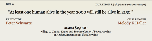 롱 나우에서 롱 베츠 서비스를 제공한다면, 이 둘은 이를 통해 내기를 진행할 수 있을 것이고, 2016년이 되면 결과가 나올 것입니다. 내기 금액과 수수료는 롱 나우 재단에 보관할 수 있습니다.