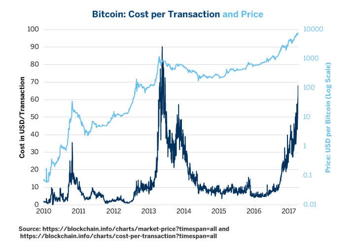 그는 "이 보고서를 쓰는 당시, 비트코인 가격이 10,000달러 선인 상황에서, 비트코인 수요와 가격을 붕괴시키지 않으면서 80달러, 100달러 또는 그 이상의 트랜잭션 비용을 유지할 수 있을까요?"라고 물으면서, "이 질문에 대한 답은 현재로선 가늠할 수 없지만, 2018년이나 2019년 어느 시점이 되면 답을 찾을 수 있을 것"이라고 말한다.