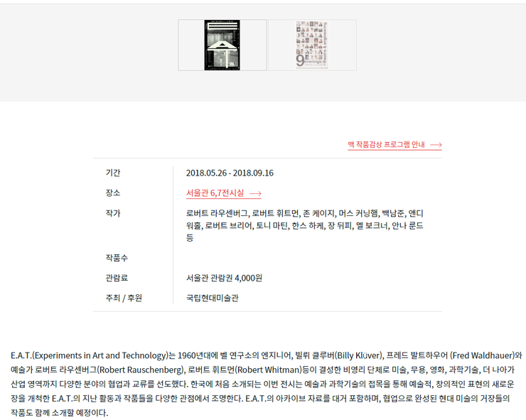 다녀오신 곳은 현대에서 만든 미술관이 아닌;; 우리나라의 대표적 국립미술관인 "국립현대미술관" 서울관 입니다. 더 오래전부터 운영되던 과천관은 서울대공원 옆에 있지요! 코끼리 열차 타고 갈 수 있는데 바람쐬러라도 근처에 한번 가보시지 않았을까 싶네요.