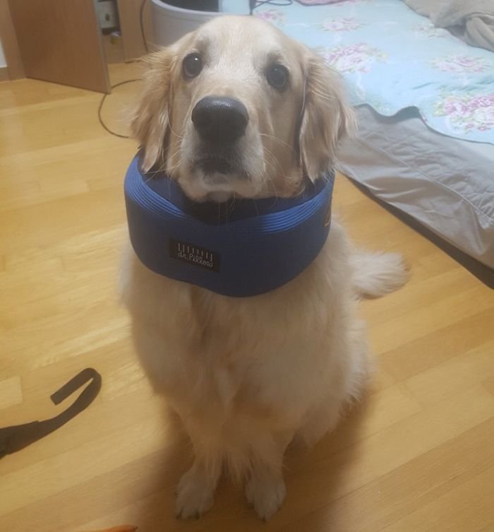 이 친구의 애정이 넘쳐남을 볼 수 있습니다. 목 보호를 시키고 싶었다나봐요.
