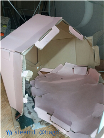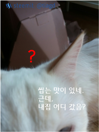냥이집은 안녕히 물에젖으니 힘조금만 받아도 찢어졌나보네요 ㅠ @tiagd 오늘도 좋은하루되세요 ㅎ