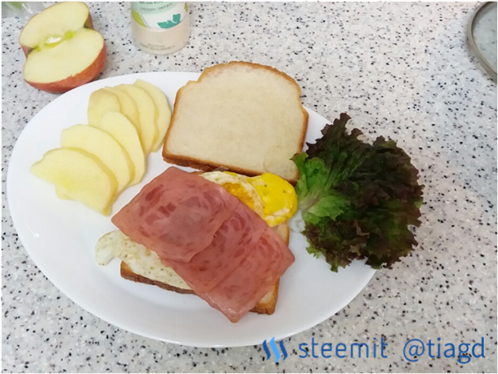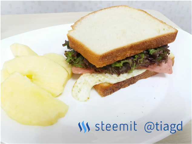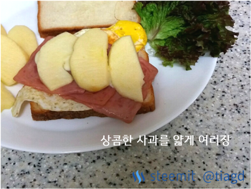 아침 샌드위치가 텁텁(?)해서 사과를 넣어봤어요. 의외로 괜찮아요!