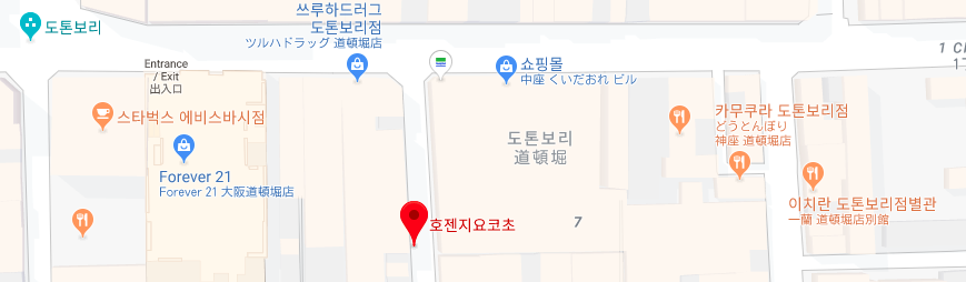 구글맵 상에서 위치를 보면 도톤보리 스타벅스, 이치란 라멘 부근이네요.